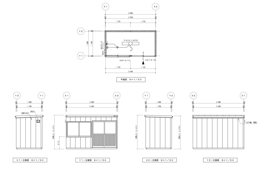 - 幅3,600㎜×奥行1,800㎜×高さ2,400㎜